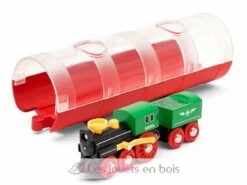 Bauen, erkunden und spielen. Dieses Set bietet das Beste aus der Welt der BRIO Holzschienenbahn. Hier kannst du an der Tankstation tanken, durch den Tunnel fahren und verschiedenste Güter verladen. Über 87 Teile zum Spielen, einschließlich batteriebetriebener Lokomotive. Und alles lässt sich ganz praktisch in dieser Box verstauen.