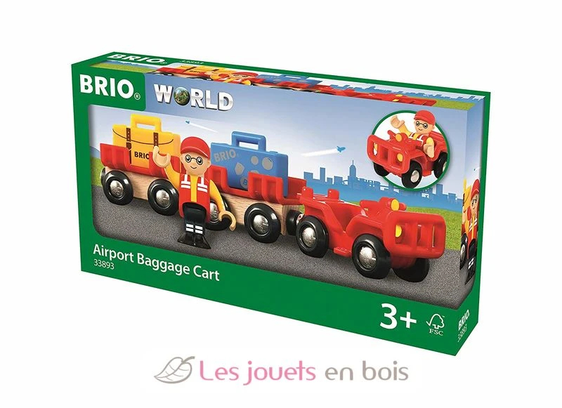 Wenn dieser Gepäckwagen über das Flughafengelände fährt, um die Koffer zu den Flugzeugen zu bringen, ist er einfach nicht zu übersehen. Der BRIO Flughafen-Gepäckwagen enthält einen Arbeiter, einen Geländewagen und zwei Anhänger, auf die jeweils genau ein Koffer passt. Eine ideale Ergänzung für jeden BRIO Flughafen und die komplette BRIO World.