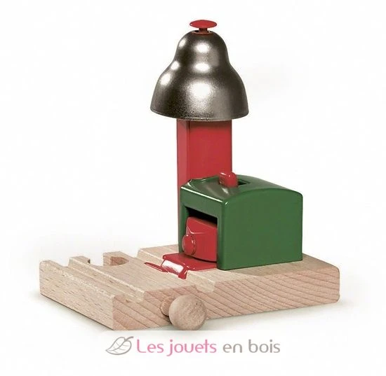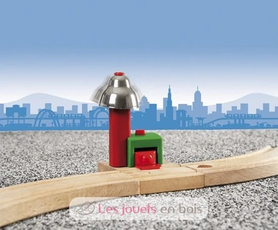 An diesen Schienen kommt niemand unbemerkt vorbei. Wenn ein Zug vorbeikommt, klingelt die Glocke. Batterien sind nicht notwendig, hier vertrauen wir auf Magnetkraft. Eine Marke BRIO Holzspielzeug. Ref: 33341