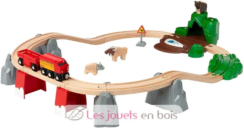 Mit dem 33988 Nordische Waldtiere Set kannst du die nördliche Halbkugel erkunden und deren einheimische Bewohner Kennenlernen. Siehst du die Tierspuren auf dem zugefrorenen See bei dem Blick auf dem Zugfenster? Ein freundlicher Braunbär sitzt auf dem Berggipfel, das Wildschwein ist in der Höhle auf Futtersuche und ein mächtiger Elch trottet durch den Wald. Dieses Eisenbahnset bietet die Möglichkeit sicher die Wunder der Wildnis zu erforschen und mehr über die fantastischen Tiere zu erfahren, die dort leben.