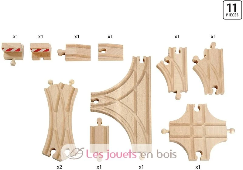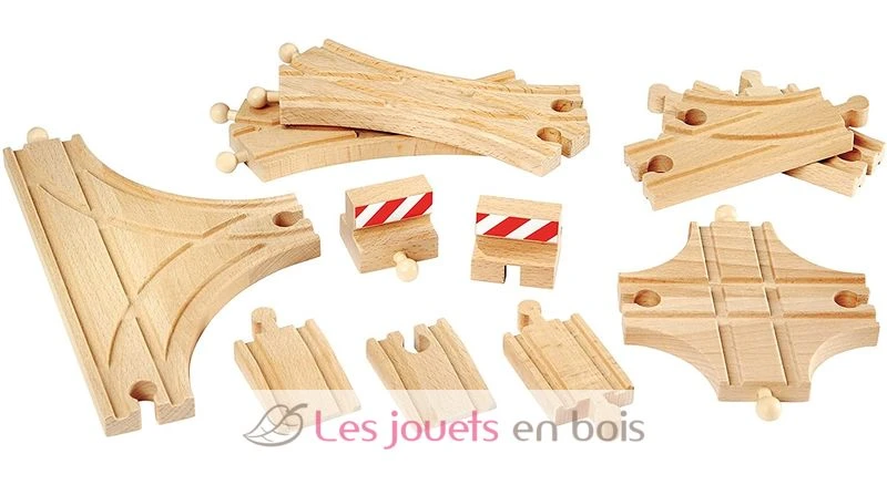 Eingeschlossen 11 Schienen. Führen Sie die Ausdehnung Ihrer Eisenbahn aus BRIO-Holz durch und ausrichten Ihren Zug auf neue Direktionen dank dieser Schienenauswahl: Weichen, eingeschlossenes Zubehör. Réf : 33307