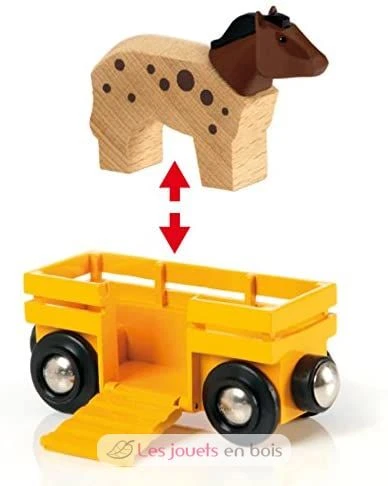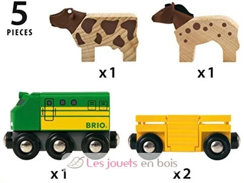 Das Pferd und die Kuh muss auf die Weide transportiert werden. Helfen Sie ihnen, um die Bahn Senkung Rampen an Bord. Jedes Tier hat seinen eigenen Auto, wird niemand beengt fühlen. Die Lok dann wird schleppen die manuellen Wiesen. BRIO Ref: 33404
