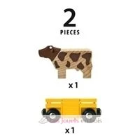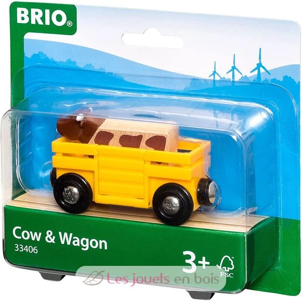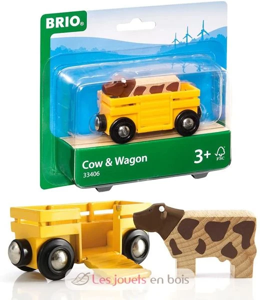 Die Kuh hat ihren eigenen Wagen zu jedem BRIO Lok zu verbinden. Hilfe die Kuh bei der Senkung der Rampe in den Zug. Heben Sie es hinter ihr, um sicherzustellen, dass die Kuh richtig installiert ist und gehen! Transportwagen mit einem Stier Holzspielzeug BRIO Holz Marke. Ref: 33406